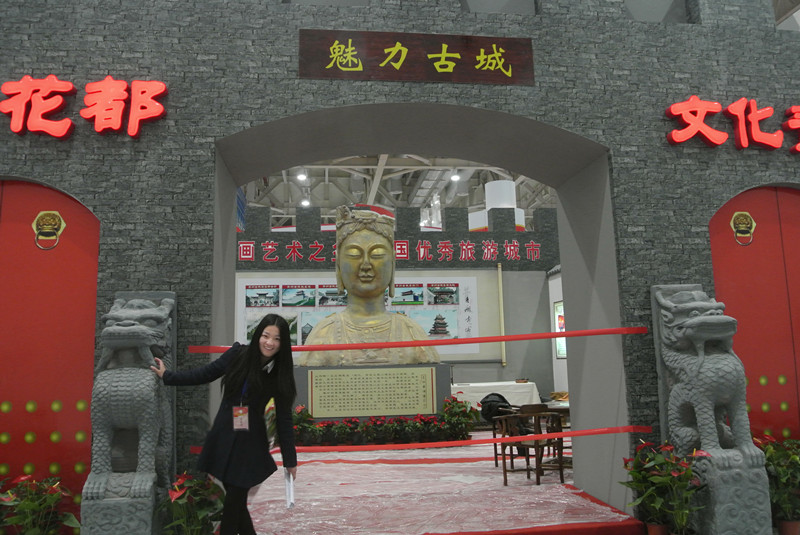 李训慧说,她接到任务后,连续用两天的时间将文化展厅里所有的展览项目背诵以至于熟练到脱口而出的地步,不仅是位于一楼展厅的潍坊文化建设成果展、当代艺术展等板块,还是位于二楼展厅的第三届中国画节板块,以及位于台湾馆一二楼的茶文化与养生文化展甚至每一个特色艺术品的简介都要烂熟于心。面对时间紧,任务重的压力,她下了很大的功夫,不仅是以认真负责的态度,更重要的是通过文展会上的介绍可以更好地提高她的专业水平。她说,自己作为一个新闻人,不仅要有扎实的专业知识,而且具备不怕吃苦的精神,感谢主办方和学校搭建的实践平台,让自己有一展身手的机会。