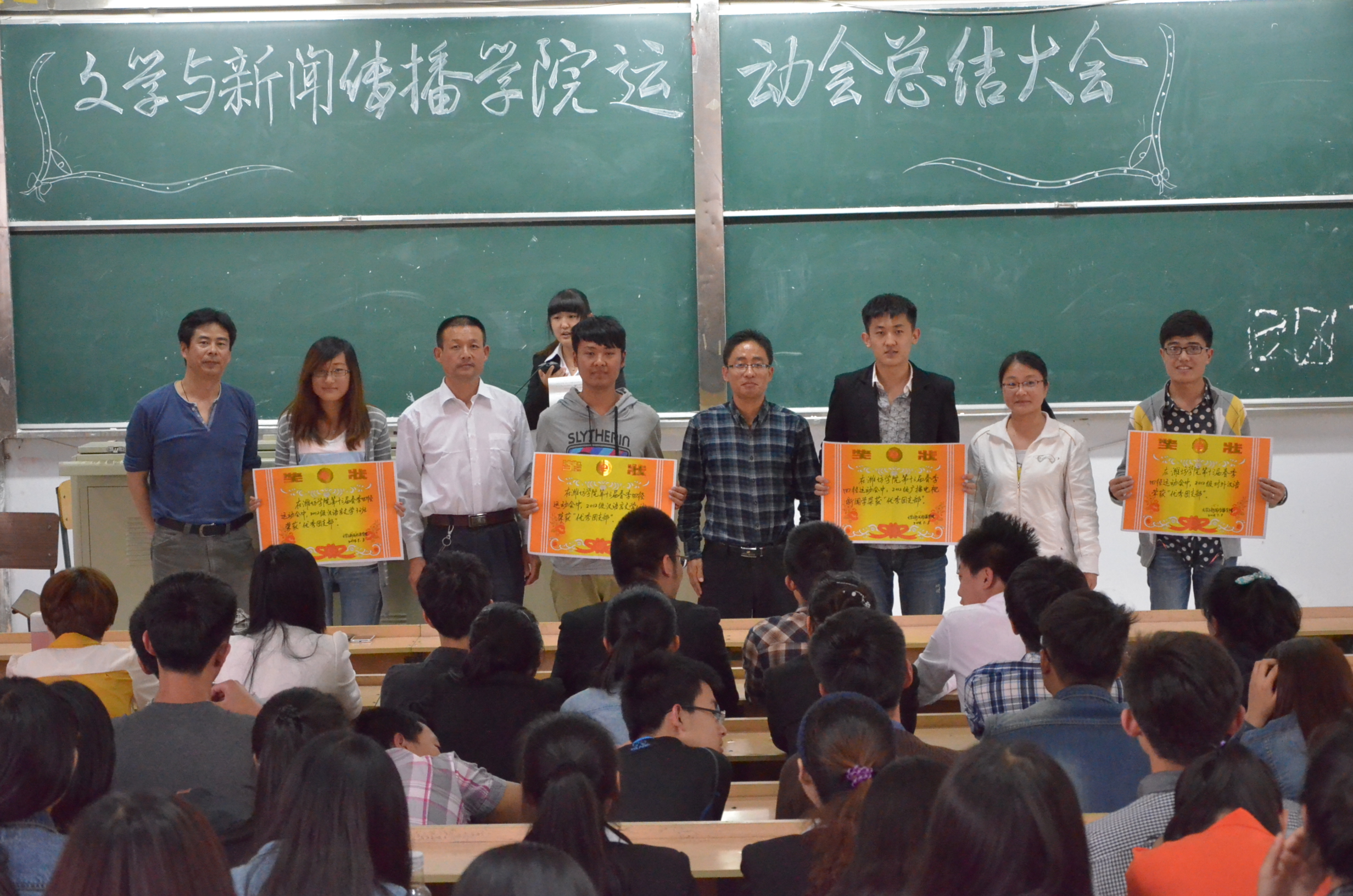 秘书长王臣臣宣读了在运动会中获奖的优秀团支部、先进运动员、获奖运动员、方队优秀个人、运动会优秀个人,以此将会议推向高潮。随后,团总支书记及辅导员老师上台为贾茗宇、孟胜男、李志强等获奖代表颁发荣誉证书并合影留念。