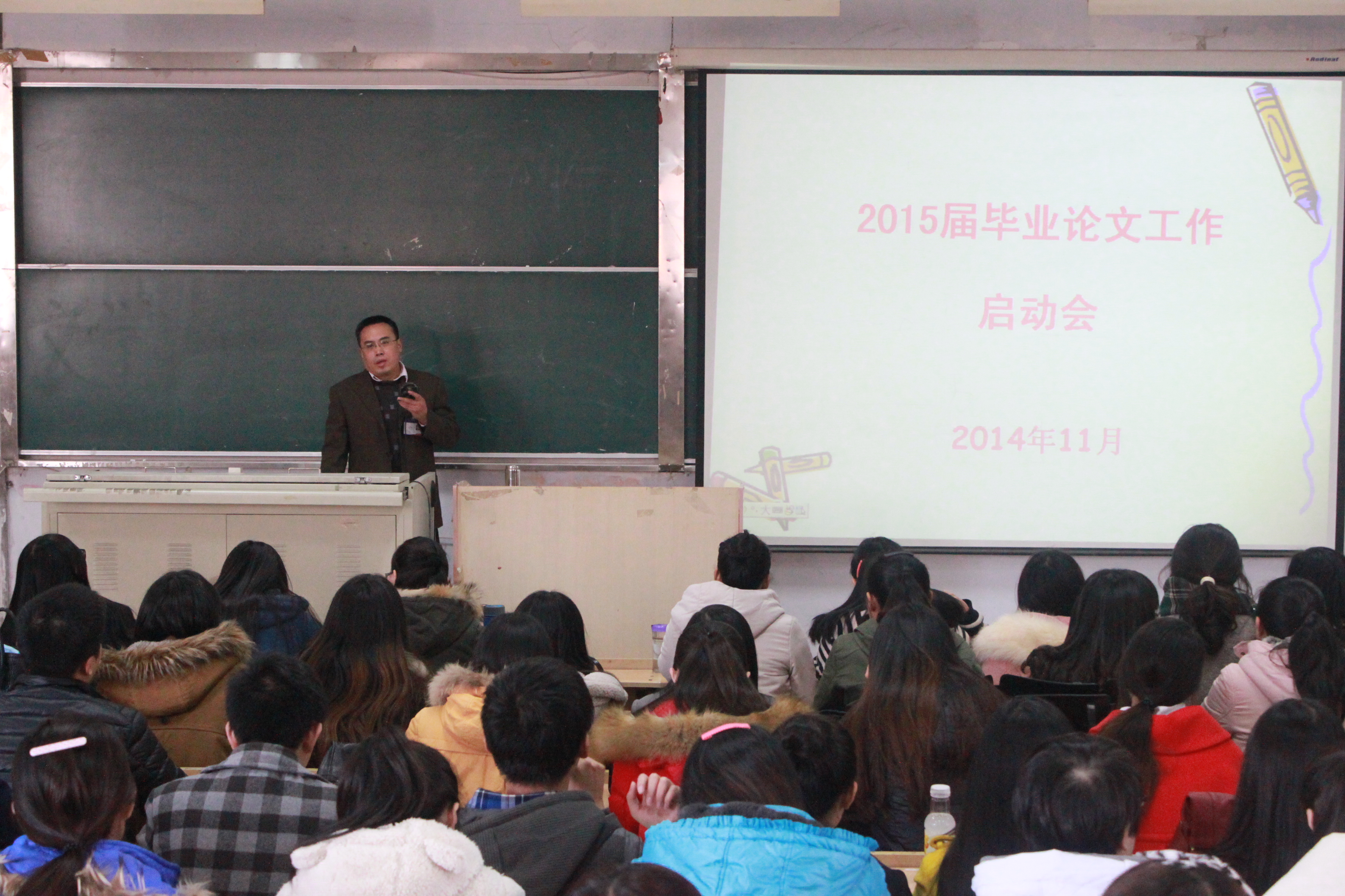为指导文学与新闻传播学院广大毕业生们如何开展毕业论文工作,11月13日下午2点,文学与新闻传播学院“2015届毕业论文工作启动会”在6201教室展开。文学与新闻传播学院副院长王恒升教授出席并担任本次动员会主讲人,2011级文学与新闻传播学院辅导员任瑞金老师一同旁听了本次动员会。