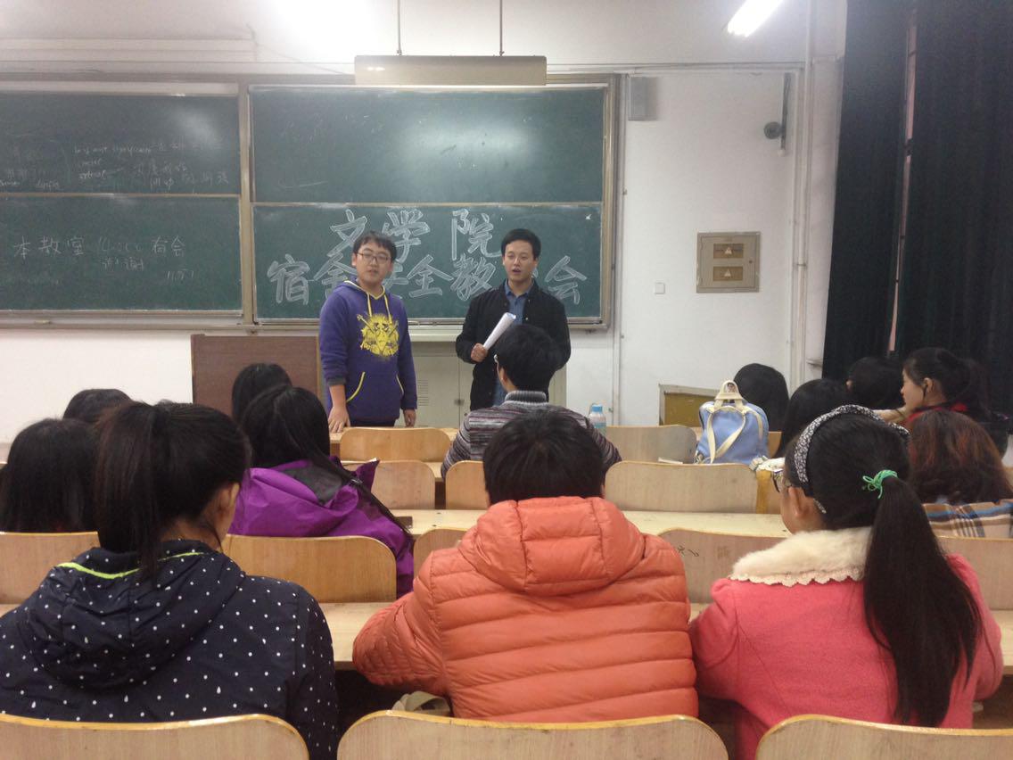 为了增强文学与新闻传播学院学生自我保护的本领,加强其自我保护意识和能力,防患于未然。文学院于11月27日在6号楼108教室召开了宿舍安全教育会并取得圆满成功。