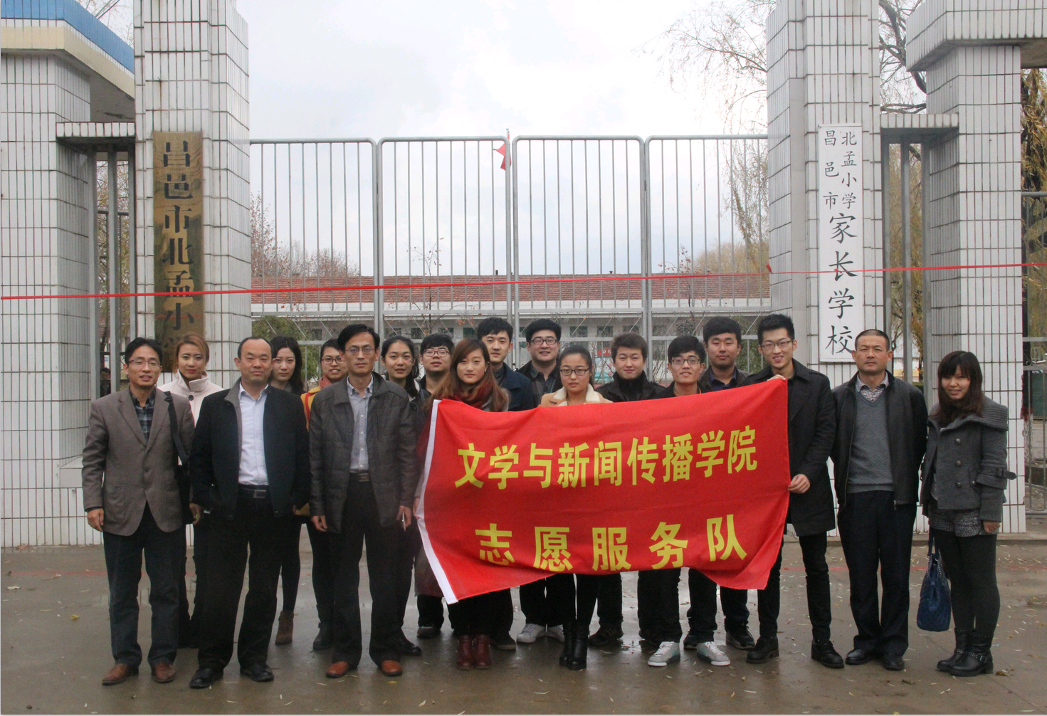 11月28日,潍坊学院文学与新闻传播学院一行17人,来到昌邑市北孟镇北孟小学进行了主题为“国学进课堂”的志愿支教活动。本次志愿活动由文学与新闻传播学院团总支副书记、辅导员办公室副主任郭荣波老师带队,辅导员辛桂京老师、韩靖雯老师随行,主要成员为文学院学生会骨干及“致远之帆”志愿服务队队员。