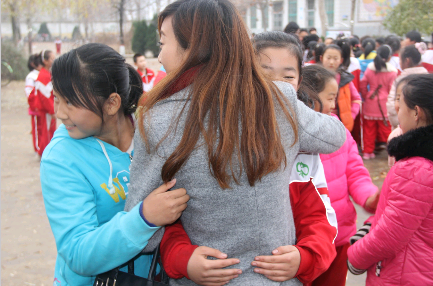 依依惜别情难舍 短暂而愉快的支教活动很快就结束了。当天下午3点半,结束了一天志愿支教的服务队员们要和北孟小学的孩子们说再见了。可是孩子们已经喜欢上这些新老师,他们拥簇着服务队员们,不舍得他们离开。 一天的相处虽然短暂,但是服务队员却和孩子们一起学习、一起玩耍,培养起了很深的感情。服务队员们一一和孩子们拥抱、合影,有的孩子哭喊着说:“老师,你别走。”当服务队员们将要离开学校的时候,一群孩子跑到送行的于校长跟前,带着哭腔,说:“校长,让老师们下个星期还来吧。”这让服务队员们很是动容。 临别时,孩子们围在学校大门口,挥手向服务队员们告别,他们高声喊着:“老师再见!”“老师,记得下个星期还来!”此次“国学进课堂”志愿支教活动就在这样温馨的画面里结束了。(撰稿人:薛竹鹏 图:卞奕龙)