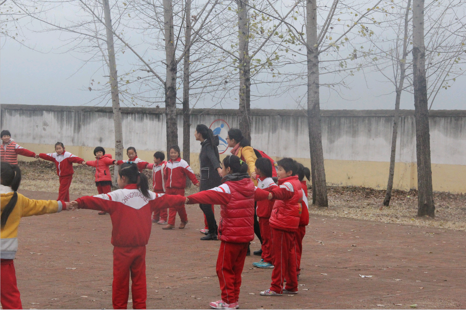 让童真烂漫盛放 上午大课间是北孟小学的课间跑操时间,志愿服务队员们主动要求带领小学生们一起跑步。刚下过雨的操场还有些泥泞,阴天的初冬已有些冷,但是文学院的学生们依然跟随孩子们一起围着操场,喊着口号。北孟小学的老师对服务队员们说,因为有你们带着,孩子们今天的口号喊得特别响亮。 跑完操,正好赶上有一个班上体育课,服务队员们就和孩子们一起上体育课,陪他们一起做游戏。女孩子们跳皮筋、丢手绢、老鹰捉小鸡,男孩子们丢沙包、骑马打仗,万发明同学还娴熟地秀起了“悠悠球”,引来一大群小学生围观,争抢着要万发明教他们玩。在丢手绢游戏中,队员张志军因为被抓到而要表演节目。艺术生出身的她,一边唱《小苹果》一边跳舞,小学生们看后高兴地拍手,热情地要张志军留下来做他们的音乐老师。 45分钟的体育课很快就结束了,孩子们恋恋不舍地回到教室准备上课了。服务队员们通过和孩子做游戏,仿佛回到了童年,曾经的欢乐时光又出现在眼前。他们羡慕这些孩子还能无忧无虑、天真烂漫地玩耍,又庆幸自己因为这些孩子有机会重温童真时的欢乐时光。