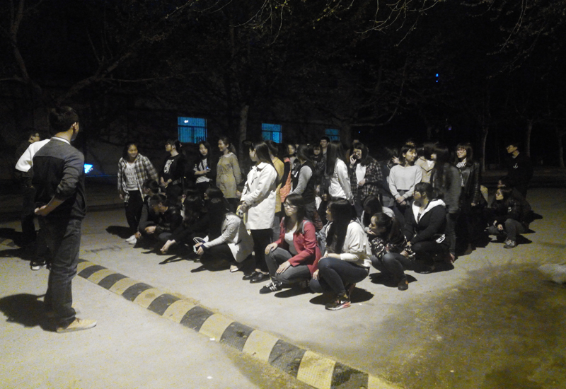 本次训练是文学院方队的首次训练,其主要内容是整好队形、让同学们相互配合摆出点阵图“文学”两个字。文学院方队的训练安排在晚上七点到九点,由学校国旗护卫队的同学为方队训练。首先,体育部部长和其他在场的学生会成员组织同学们站好队伍。学生会副主席孙尉轩为鼓励同学们好好训练,宣布参加方队的同学至少可以加三分的德育分并在运动会期间可以不用出勤。紧接着便开始了点阵图拼字的训练,点阵图的训练需要同学们的高度配合才能够呈现出震撼的效果,所以在方队训练中最早开始训练的就是点阵图,以更好的提高同学们的默契和动作熟练程度。在训练点阵图的过程中同学们的配合并不默契,在一遍遍的重复训练中同学们的配合度得到了很好的提高。虽然是借着路灯的灯光,但同学们训练认真,态度积极,配合默契,相信经过训练文学院方队在运动会开幕式上一定会取得好的成绩。