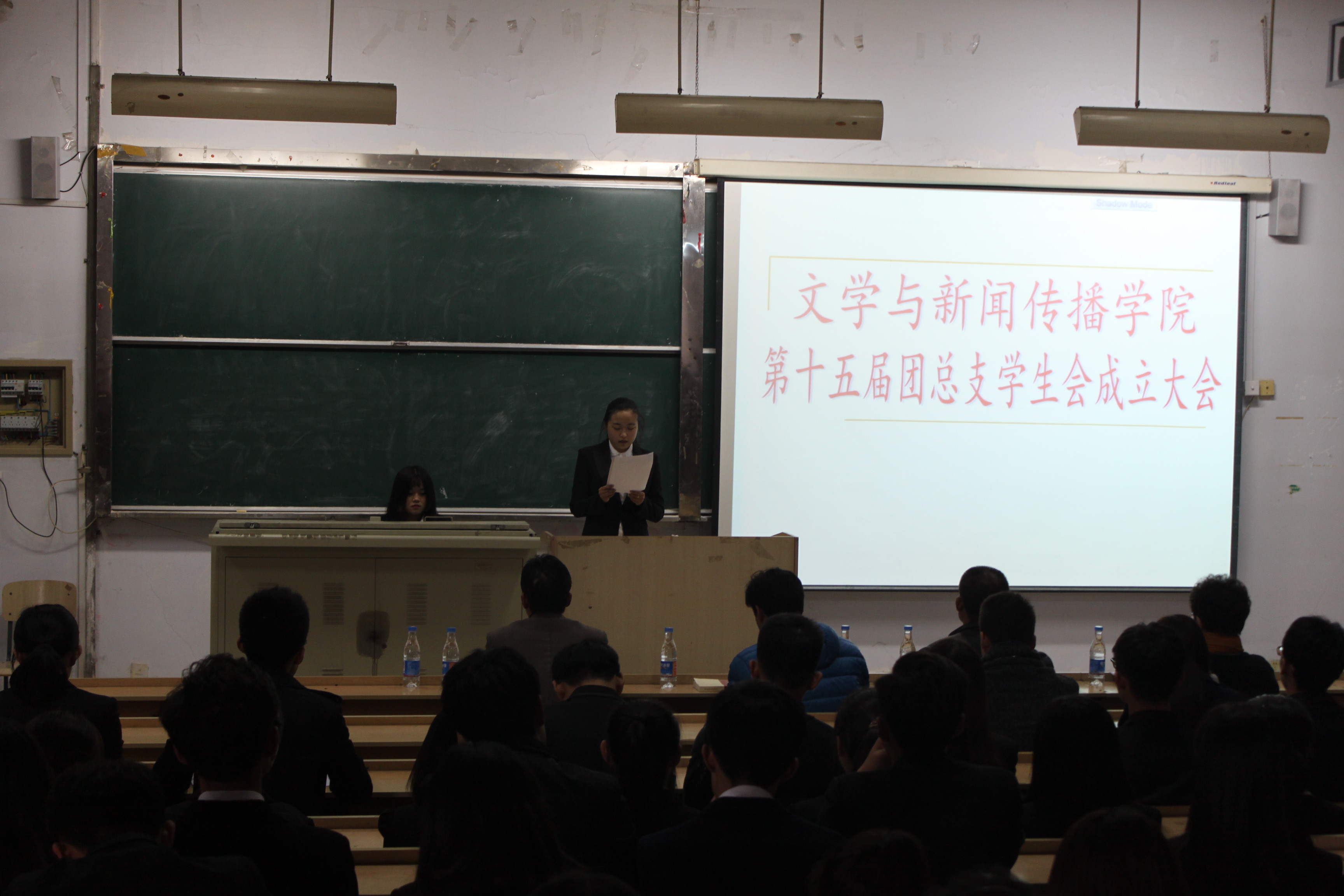 11月4日下午,文学与新闻传播学院第十五届团总支、学生会成立大会在致远楼6201教室举行。文学与新闻传播学院党总支书记郭顺敏出席会议并发表重要讲话。文学与新闻传播学院辅导员办公室副主任兼团总支副书记郭荣波,辅导员辛桂京、徐金德出席大会。文学与新闻传播学院第十四届学生会秘书长王蕾、第十五届学生会秘书长李彦桦分别主持成立大会第一阶段和第二阶段。第十五届学生会主席团成员,各部部长、副部长,干事共200余人参加了大会。