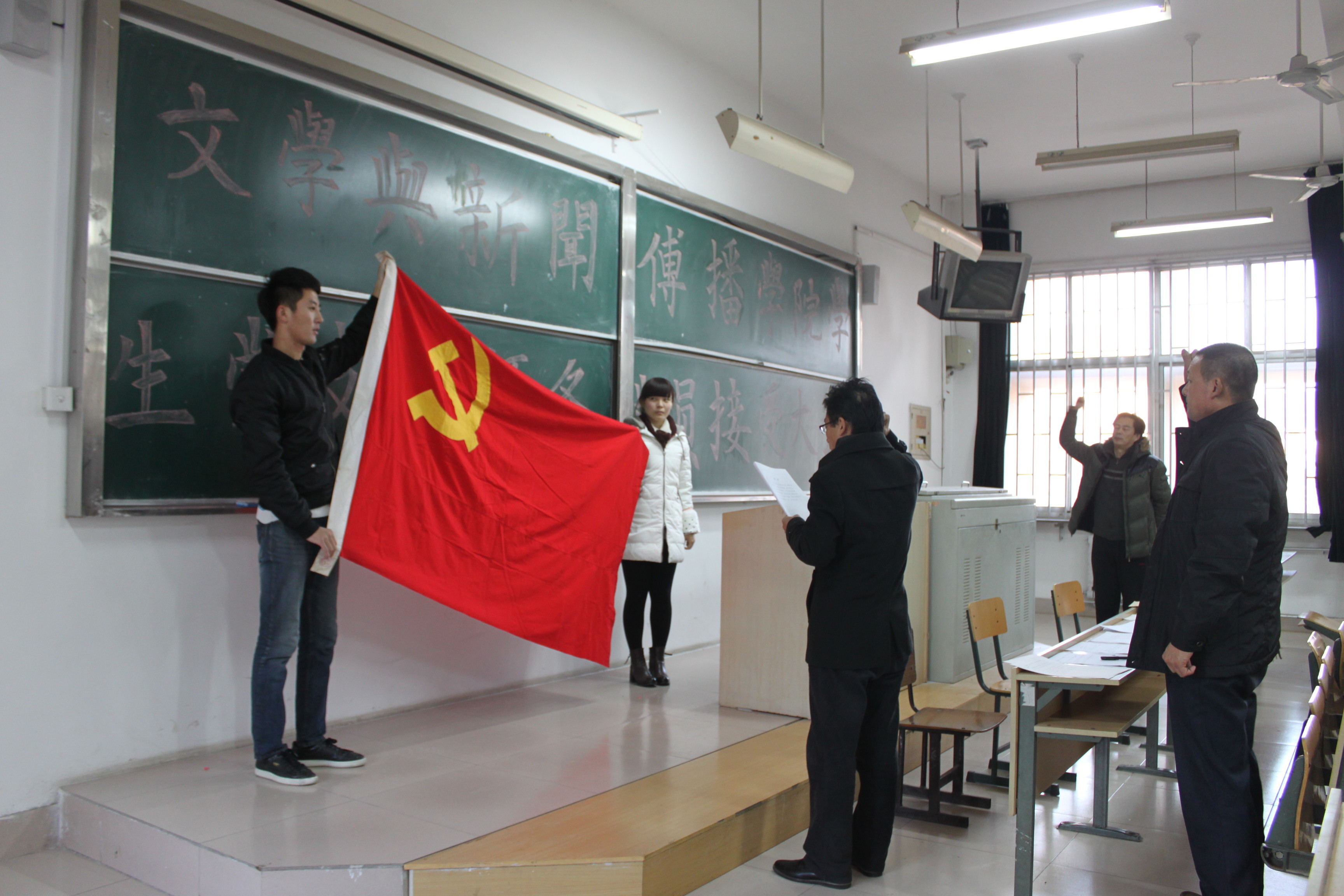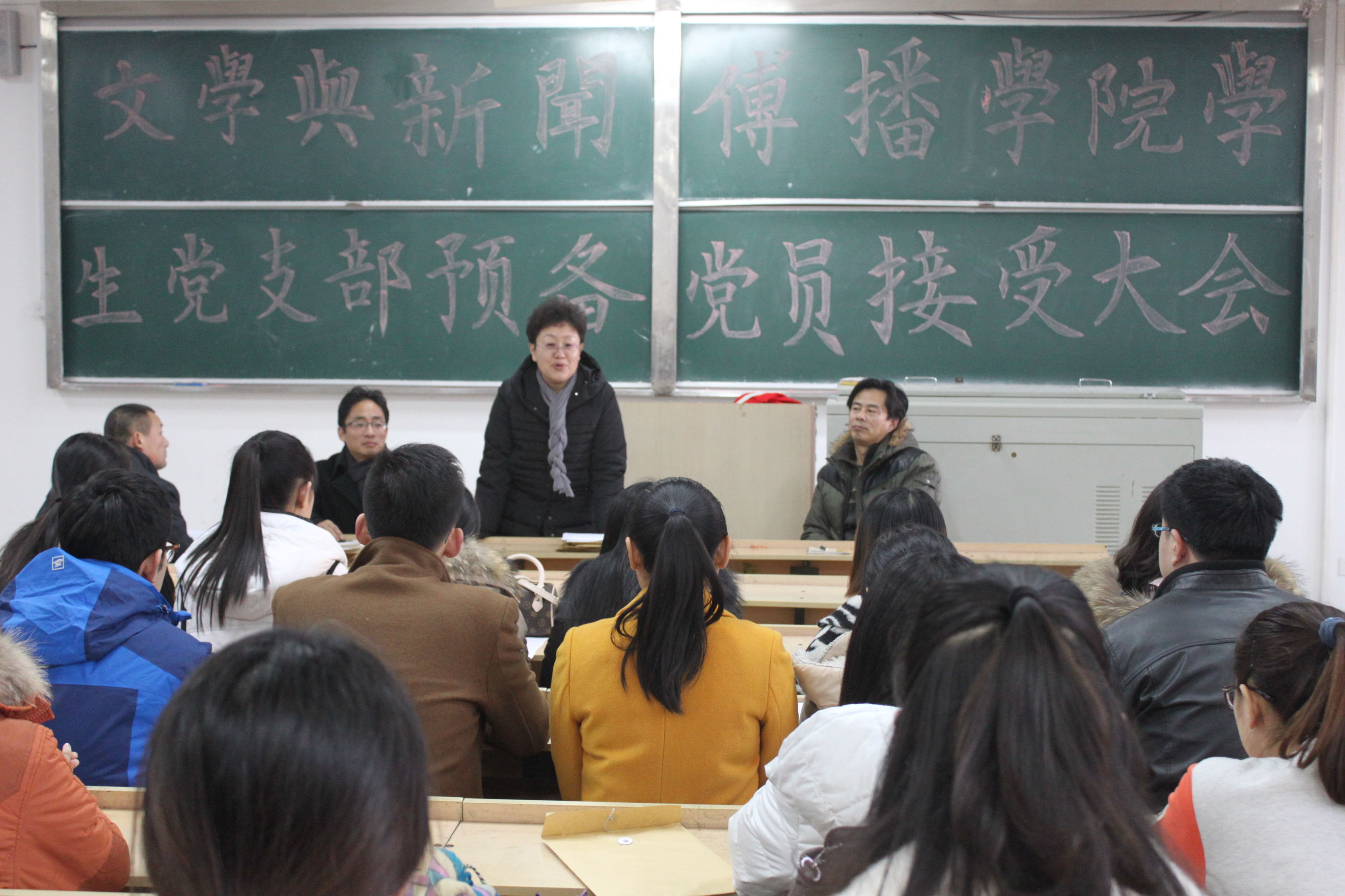 11月26日下午3点,文学与新闻传播学院在致远楼6301教室举行文学与新闻传播学院学生党支部预备党员接收大会。文学与新闻传播学院党总支书记郭顺敏、辅导员办公室副主任兼团总支副书记郭荣波、2012级辅导员徐金德老师和2014级辅导员辛桂京老师出席大会,15名入党申请人参加了会议,部分党员和入党积极分子代表列席了会议。