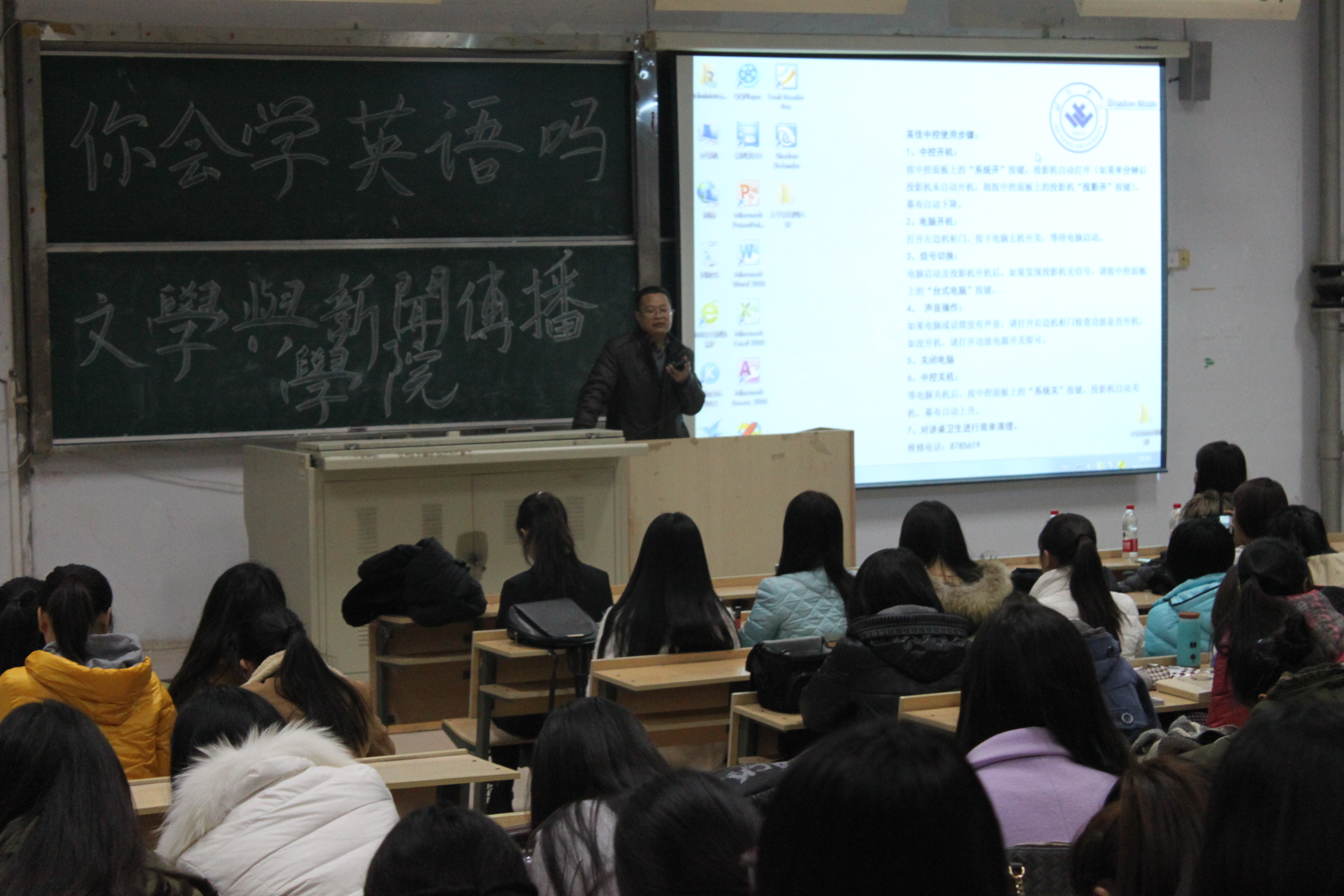 12月2日晚,文学与新闻传播学院在致远楼6201教室顺利举行了以“你会学英语吗”为题的四六级宣讲会。会议诚邀外国语学院老师刘常清为2014级和2015级文学院部分学生做了精彩演讲。