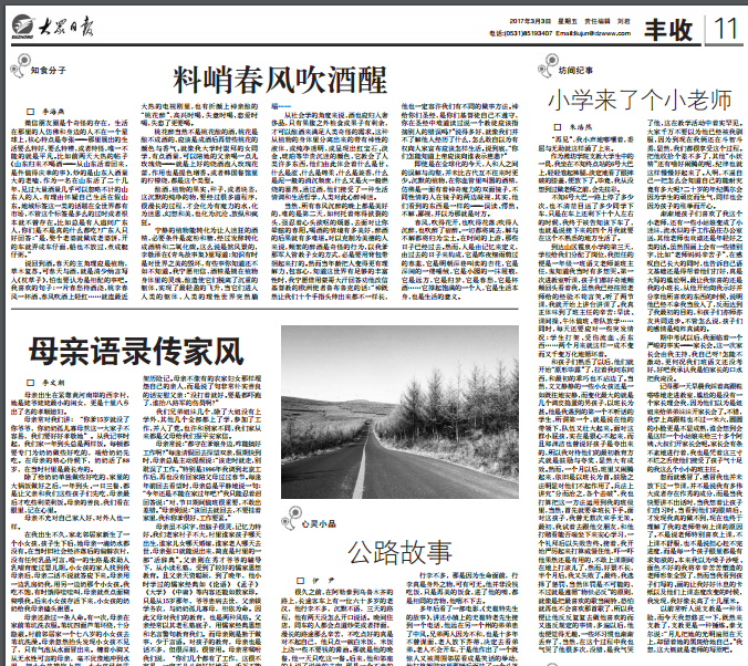3月3日,《大众日报》第11版刊发表了我院学生朱浩然的文章——《小学来了个小老师》。