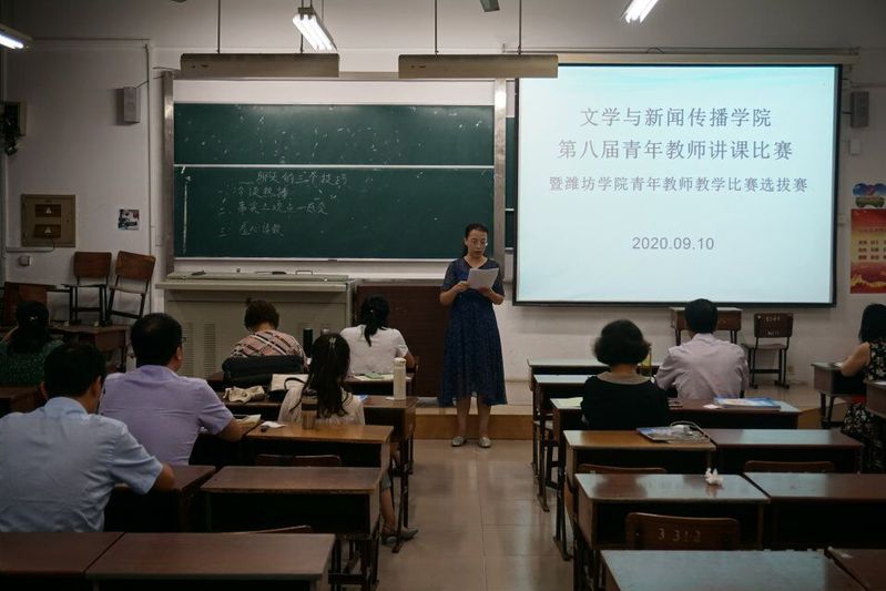 为了提升青年教师的教学能力,为文学院教育事业注入新的能量,文学与新闻传播学院于九月十日下午三点在6311教室举行了第八届青年教师讲课比赛暨潍坊学院青年教师教学比赛选拔赛。本次比赛共有8位参赛选手,并由张德升院长、赵红卫、陈曦、韩志湘等老师担任评委。