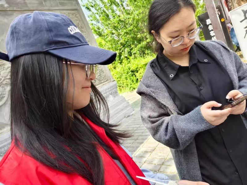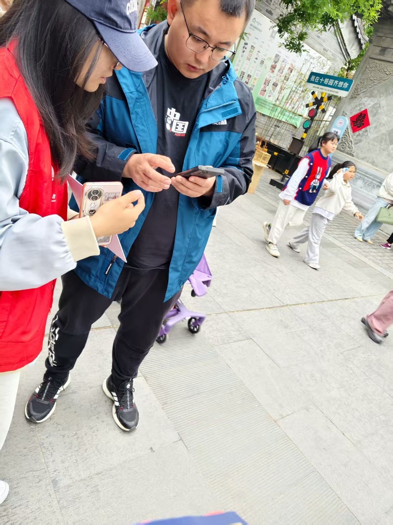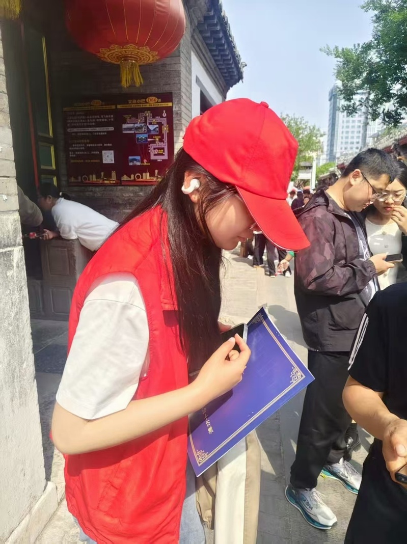深入园区后,队员们在丁香油坊、砚香楼等热门景点化身“文明引导员”,时刻关注人流变化,及时疏导客流,提醒游客有序排队,为大家营造出和谐舒适的游览环境。同时,她们充分发挥文史专业优势,为游客提供细致的咨询服务,贴心的态度和专业的解答赢得了外地游客的连声称赞。