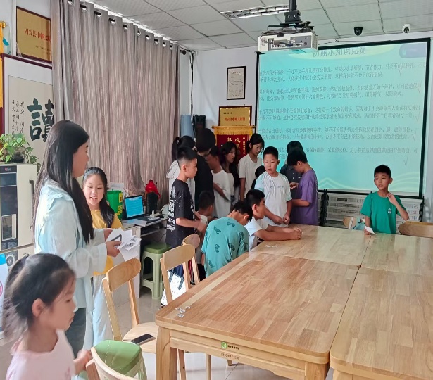 在活动实施过程中,暖阳关爱队充分发挥创造力,突破场地限制,将图书馆空间巧妙转化为沉浸式安全教育体验馆。“暑期安全小课堂”打破传统说教模式:队员们化身“安全守护者”,通过动态可视化PPT剖析溺水案例,震撼人心的警示视频还原事故现场,原创安全口诀(如“游泳六不准,安全记心中”)让知识入脑入心。互动环节更是精彩纷呈:安全知识擂台赛点燃参与热情,“隐患大侦探”情景模拟培养风险识别能力,抽象的“注意安全”转化为孩子们心中清晰的“危险红区”与“避险锦囊”。“原来发霉食物会产生黄曲霉素!”孩子们恍然大悟的感叹,印证了教育成效。团队特别注重家校协同,开设“家长安全课堂”传授监护技巧与急救技能,创新开展亲子“安全创想家”活动,共同设计家庭安全警示标识与应急逃生路线图,在互动中筑牢家庭安全防线。“图书馆的老师们把安全知识讲得既有趣又实用!”孩子们真挚的喜爱与家长们由衷的赞许,成为团队最珍贵的收获。