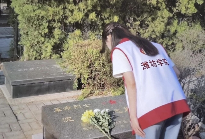 团队首站走进青州烈士陵园,以“缅怀革命先烈·沉浸红色体验为主线,在巍峨的烈士纪念碑前集体默哀,聆听1711位青州英烈事迹。“站在纪念碑前,我仿佛看到了革命先辈们浴血奋战的场景。”成员司同学表示,“作为新时代青年,我们要铭记历史,将英烈精神转化为学习动力,为实现中华民族伟大复兴贡献力量。”