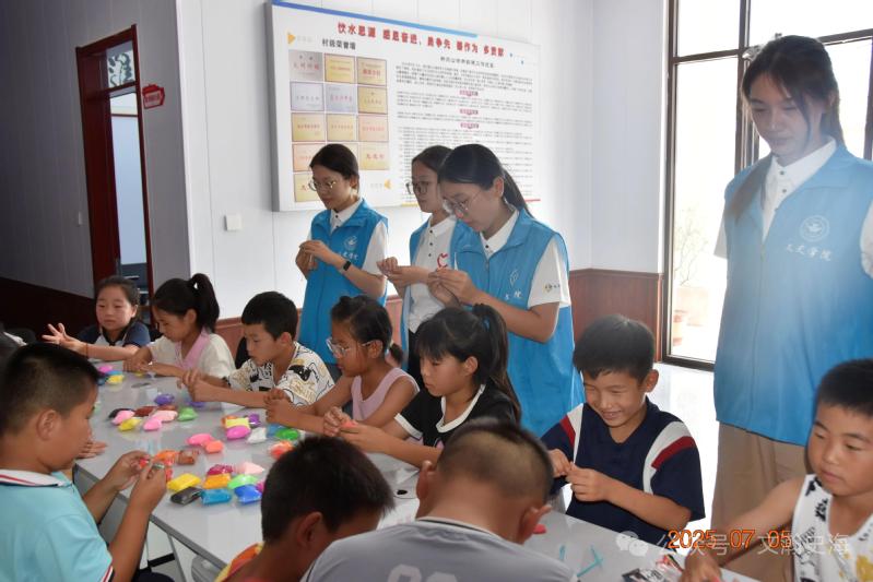 7月5日,由潍坊学院文史学院(文化与旅游学院)的学生组成的红鸽传韵志愿服务队走进前埠下村,开展“七彩假期”志愿活动。通过红色革命教育与创意手工实践的形式,为孩子们带来了充实而有意义的一天。活动伊始,志愿者们精心准备的红色革命宣讲正式开启。志愿者们借助生动的图片、精彩的视频,将革命历史化作一个个鲜活的故事娓娓道来。孩子们聚精会神地聆听,眼神中满是对那段峥嵘岁月的好奇与崇敬。在革命烈士家书朗读环节,孩子们用稚嫩却饱含深情的声音诵读着一封封家书。当读到赵一曼写给儿子的信,“在你长大成人之后,希望不要忘记你的母亲是为国而牺牲的”,字里行间的家国情怀感染着在场每一个人,氛围庄严肃穆,不少孩子深受触动。
