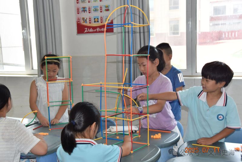 “大家可以用这些吸管积木,拼出自己喜欢的东西,动物、房子、交通工具都可以哦!”志愿者话音刚落,孩子们就迫不及待地拿起五颜六色的吸管积木动手创作。有的孩子专注地拼接着“小火车”,一节节车厢连起来,还不忘加上“烟囱”;有的孩子合作搭建“城堡”,讨论着哪里该加个“窗户”,哪里该修个“大门”。