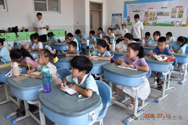 7月11日,潍坊学院文史学院(文化与旅游学院)红鸽传韵志愿服务队走进当地社区富戈庄小学,为孩子们带来了一系列趣味十足的特色课程,让孩子们在欢乐中收获知识、拓展视野。