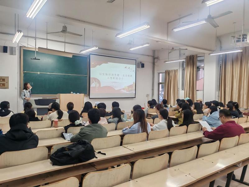 基于对发展流程的系统解读,她针对入党积极分子成长提出三项核心要求:一是以党员标准强化自我约束,在政治信仰、学业工作、品德修养维度建立高标准检视机制;二是以实践锻炼实现能力进阶,主动参与志愿服务、社会实践与学科竞赛,在实战中锤炼素养;三是以先进性建设发挥带动作用,以模范言行引领同学,在工作中主动担当,彰显先锋本色。