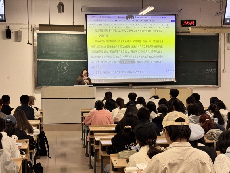 为助力2025级新生深化专业认知、科学规划学业,平稳开启大学新征程,9月27日至10月12日,文史学院(文化与旅游学院)分专业开展2025级新生专业认知教育。中文系主任孙伟红、历史(文博)系主任谢金勇、旅游系副主任王鹏程分别主讲,全体新生参会。