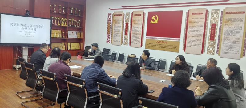 10月20日,全国汉语国际教育专业研究生教指委委员、山东省语言学会副会长、青岛大学国际中文教育专业硕士生导师史冠新教授应邀来到潍坊学院文史学院,为师生们作了题为“汉语作为第二语言教学的若干问题”的讲座。讲座由文史学院副院长卢飞主持,文史学院相关教师与学生代表参加。