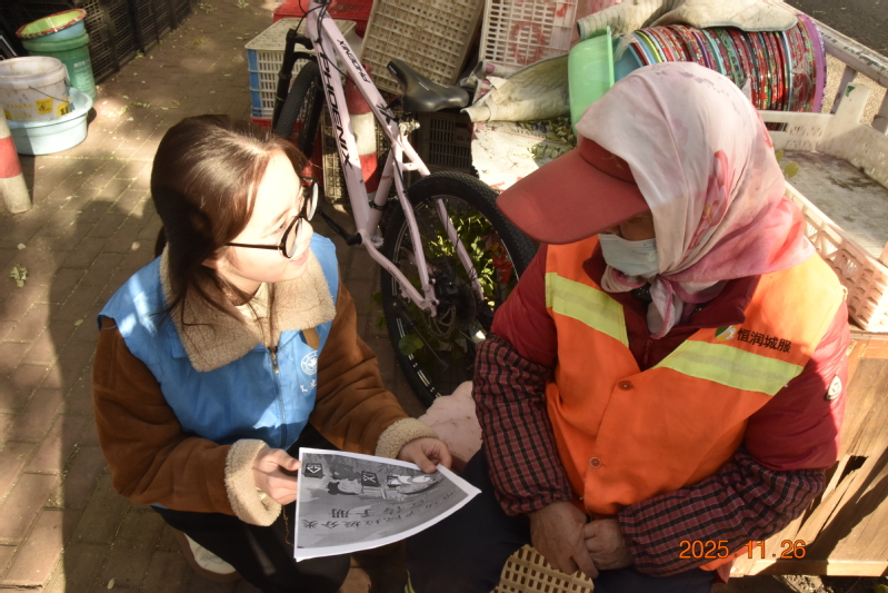 张芳芳、孙宝庚为“百万大学生进社区”社会实践基地揭牌。朝阳志愿服务队开展“垃圾分类宣传引导”“垃圾清理”“设施擦拭”等一系列的志愿活动。