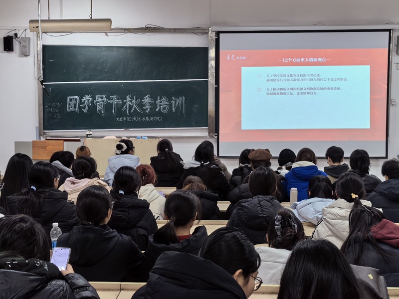为推动习近平文化思想入脑入心,引导学生骨干把握文化传承的时代使命,11月27日,文史学院(文化与旅游学院)第四届学生会全体成员在6113教室开展专题学习活动。