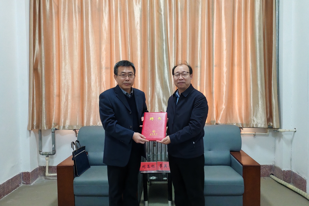 讲座前,李英德为刘玉栋颁发客座教授聘书。