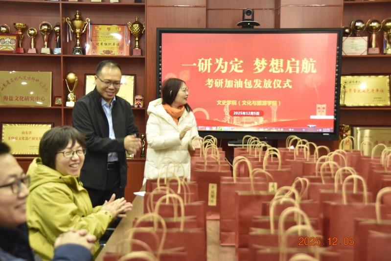 为鼓舞2026届考研学子冲刺斗志、夯实应考底气,12月5日下午,文史学院(文化与旅游学院)于致远楼6310教室开展“一研为定,梦想启航”考研加油包发放仪式。学院副书记、副院长张芳芳,副院长卢飞,各系教师代表、毕业班辅导员及应届考研学子共同参与本次活动。