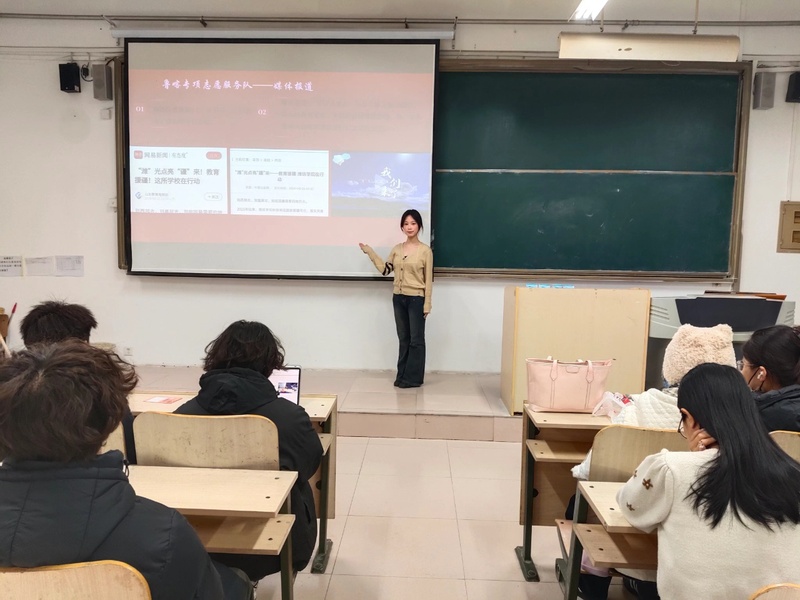 会议重点展示了学院志愿服务的实践成果。重点介绍了“七彩假期红鸽传韵”志愿队深入乡村,结合文史专业特色,为儿童开设红色文化与非遗传承课程,通过创新教学形式有效激发了学习热情。“‘潍’光点亮‘疆’来”志愿队则持续聚焦铸牢中华民族共同体意识,发挥学院“文化传承+教育实践”优势,通过特色课程与两地交流活动,为民族团结进步贡献青春力量。
