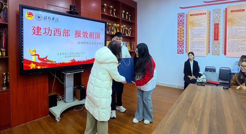 为弘扬志愿精神,引导青年学子扎根基层、服务社会,12月11日,文史学院召开“建功西部 报效祖国”西部计划志愿者座谈会,特邀2020级汉语言文学专业张赵洋子、2022级旅游管理(专升本)专业王乐两位优秀西部计划志愿者返校分享基层服务经历。学院党委副书记、副院长张芳芳,相关辅导员及20余名学生代表参会。