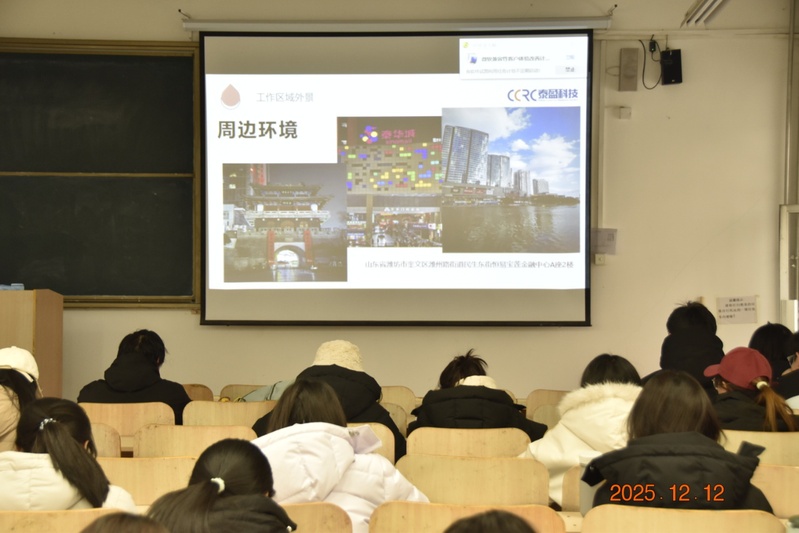 为深化校企协同合作,搭建高质量就业桥梁,助力文史学子精准对接职场需求,12月12日,潍坊泰盈科技有限公司一行到访文史学院,于致远楼6107教室举办宣讲会暨校园招聘会。泰盈科技有限公司负责人陈鹏经理、学院学工办副主任郭泰山及40余名学生代表参会。
