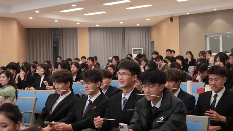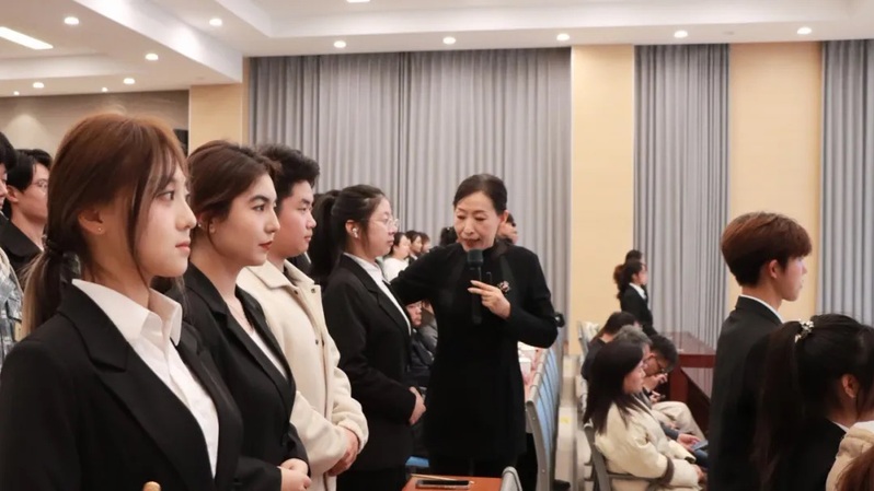 邹霞以“礼之至诚 君子有仪——谈谈大学生礼仪素养”为核心主题,采用“理论讲解+实操演练”的教学模式,内容兼具实用性与指导性。课堂上,邹霞围绕职场核心礼仪规范,从基本站姿、坐姿的标准要领,到微笑表情的感染力传递,再到握手礼仪的力度把控与场景运用,通过生动案例解析、规范动作示范和互动式练习,深入浅出地阐释了礼仪在求职面试及职场沟通中的重要价值。同学们专注聆听要点记录,主动参与实操训练,在老师的细致指导下纠正细节偏差,切实提升礼仪应用能力。