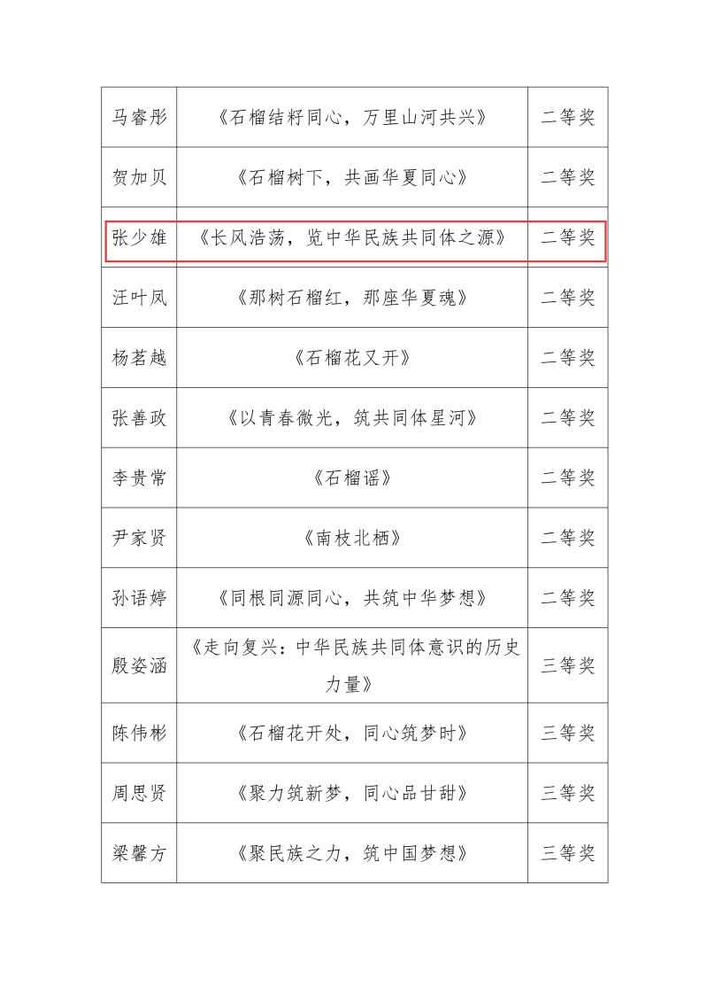 为深入学习贯彻习近平总书记关于铸牢中华民族共同体意识的重要指示精神,引导师生厚植家国情怀,文史学院积极组织参与由党委宣传部、党委统战部等六部门联合举办的“石榴花开同心筑梦,华夏脉承聚力兴邦”主题征文活动,学院获得教工组三等奖1项,学生组一二三等奖各1项,学院获评“优秀组织单位”。