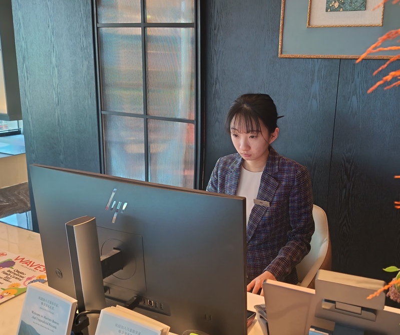 除了完成行政酒廊日常的摆台、饮品制作与递送、餐区整理等基础工作,还要掌握为行政客人办理入住退房的工作能力。主动观察高端客户的需求,前辈忙碌时及时补位,提前预判物资需求并补货;遇到客诉或疑难问题,不再被动等待安排,而是主动沟通协调,和同事互通工作进度,共同保障酒廊服务的顺畅。