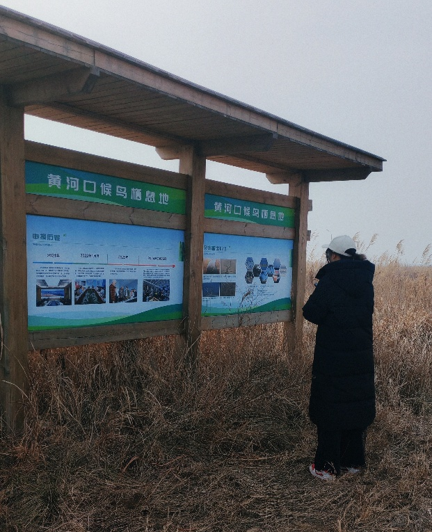 实践队抵达黄河入海口生态旅游区,先后走进鸟岛观测站、远望楼与东方白鹳宣教中心等地点,近距离观察到大天鹅、东方白鹳等越冬鸟类,深入学习了湿地保护知识、了解到东方白鹳的栖息习性与保护现状,真切感受黄河口湿地作为候鸟重要家园的生态底蕴。
