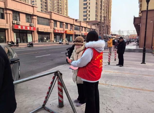 活动期间,志愿者们化身文明宣传员与环境守护者。在社区广场,他们向居民发放禁止燃放烟花爆竹的宣传手册,耐心讲解禁燃规定与安全知识,引导大家共同守护清新空气;在街头巷尾,他们身着志愿马甲,向过往行人普及创文知识,倡导文明出行、爱护环境的生活理念。