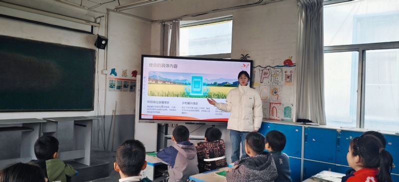 活动以长征胜利90周年为切入点,服务队借助图文并茂的PPT和鲜活的视频资料,为同学们讲述红军二万五千里长征的历史壮举,结合2026年纪念节点介绍各地“重走长征路”相关活动,让同学们直观感受长征的壮阔征程。宣讲中,队员们以“半条被子”等经典党史故事为载体,重现长征中的温暖与坚守,深入阐释长征精神的时代内涵与传承意义;同时用通俗易懂的语言和鲜活案例,围绕科技自立自强、乡村振兴等主题,讲解新时代青年的责任与担当,让红色理论贴近少年生活。