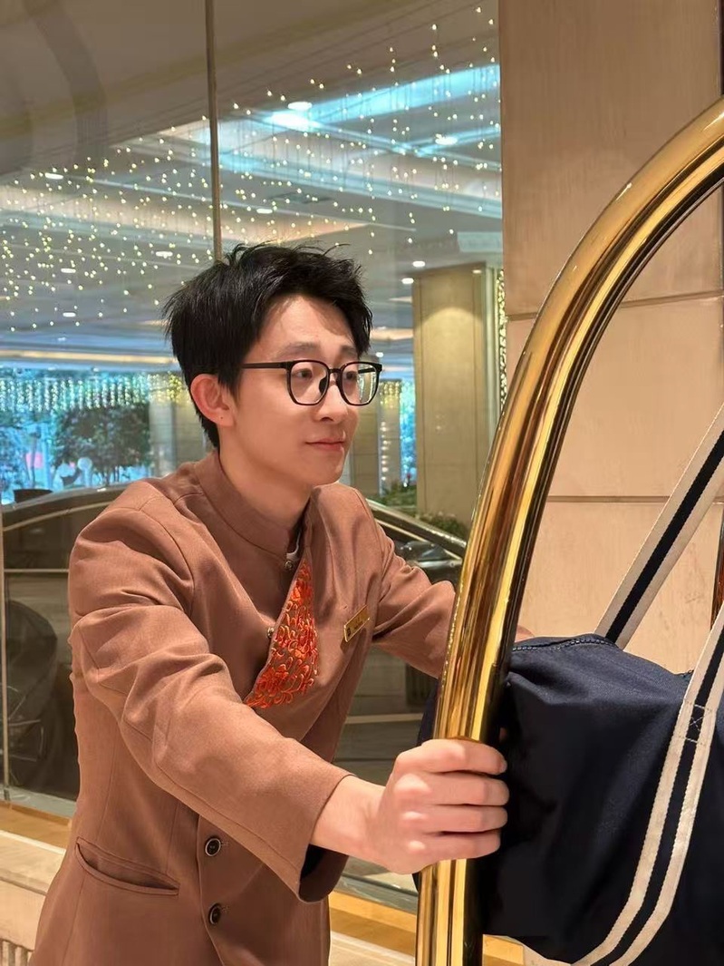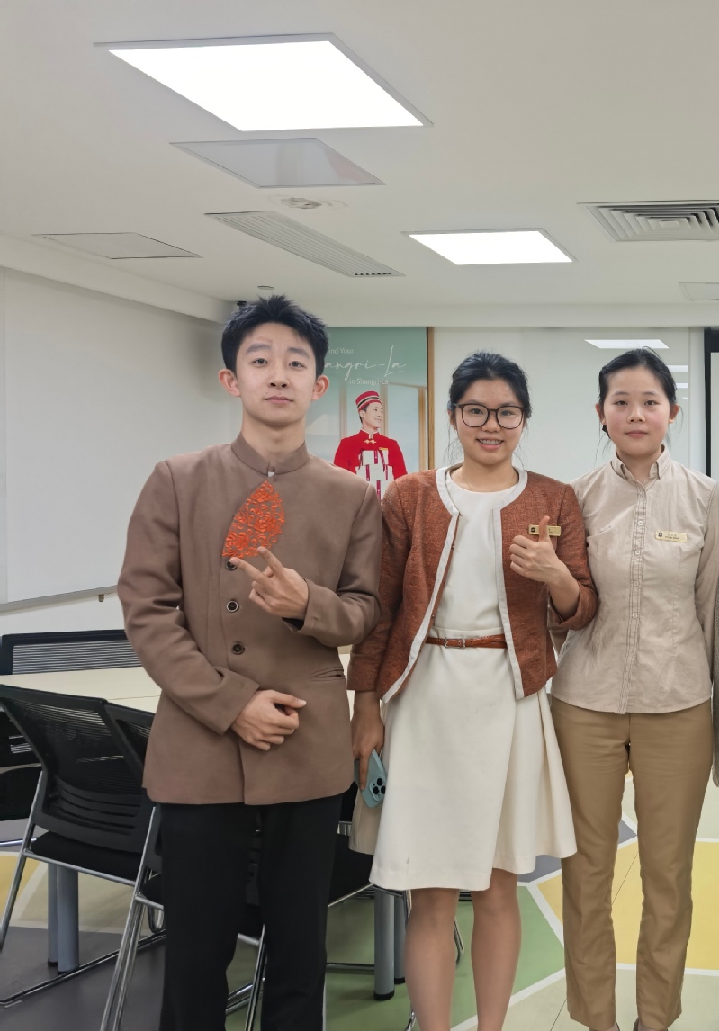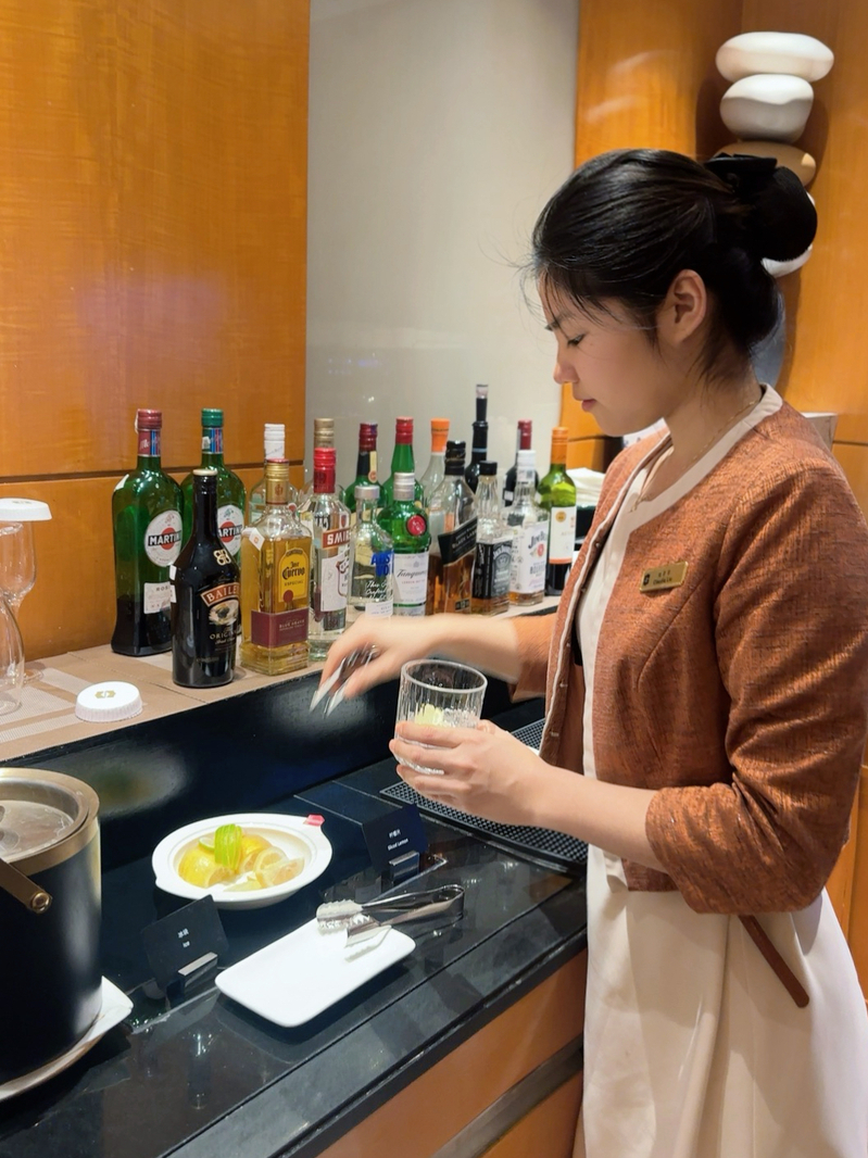 我对“服务”二字有了全新认知:服务不仅是满足宾客需求,更是自我淬炼的过程。在酒廊的日常里,我周旋于各类客情、解决多样问题,这份经历褪去了我的稚气,沉淀出耐心、细心与同理心;从抵触与外国宾客沟通,到能带领新同事主动交流,我的英语应用能力显著提升,更收获了前所未有的底气与自信。
