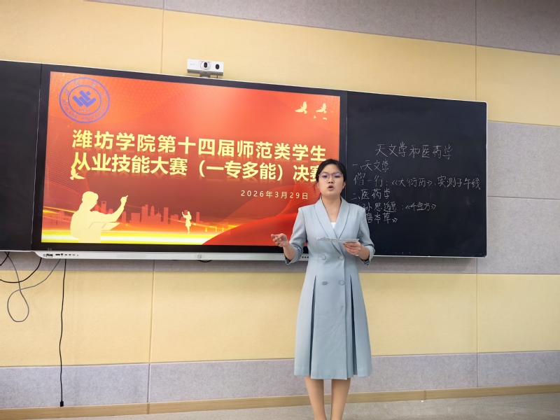 3月28日至29日,潍坊学院第十四届师范类学生从业技能大赛(中学语文)(中学一专多能)两项决赛在文史学院圆满落幕。本次大赛对标山东省高校师范类从业技能大赛赛事标准,旨为省赛选拔校内优秀人才,进一步激发广大师范生深耕教育、锤炼技能的热情。