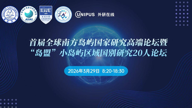 3月29日,由大连大学承办的首届“全球南方岛屿国家研究高端论坛暨‘岛盟’小岛屿区域国别研究20人论坛”在线上举行。论坛开幕式由“岛盟”理事长、大连大学副校长夏洋教授主持,大连大学校长孟长功教授致开幕词。在嘉宾致辞环节,教育部国别和区域研究工作秘书处主任、北京语言大学区域与国别研究院院长罗林教授,教育部区域国别学科评议组秘书长、浙江师范大学非洲研究院院长刘鸿武教授分别致辞。开幕式后是大会特邀报告环节:上海国际问题研究院学术咨询委员会主任杨洁勉研究员,北京大学区域与国别研究院副院长、教育部区域国别学科评议组召集人翟崑教授,中国亚太学会大洋洲分会会长、华东师范大学政治与国际关系学院汪诗明教授先后做大会报告。