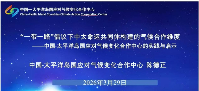 大会报告环节结束后,“小岛屿区域国别研究20人论坛”接续举行。中国—太平洋岛国应对气候变化合作中心常务副主任,我校区域国别研究院执行院长、文史学院学术院长陈德正教授应邀出席,并作题为《“一带一路”倡议下中太命运共同体构建的气候合作维度——中国—太平洋岛国应对气候变化合作中心的实践与启示》的主旨发言。